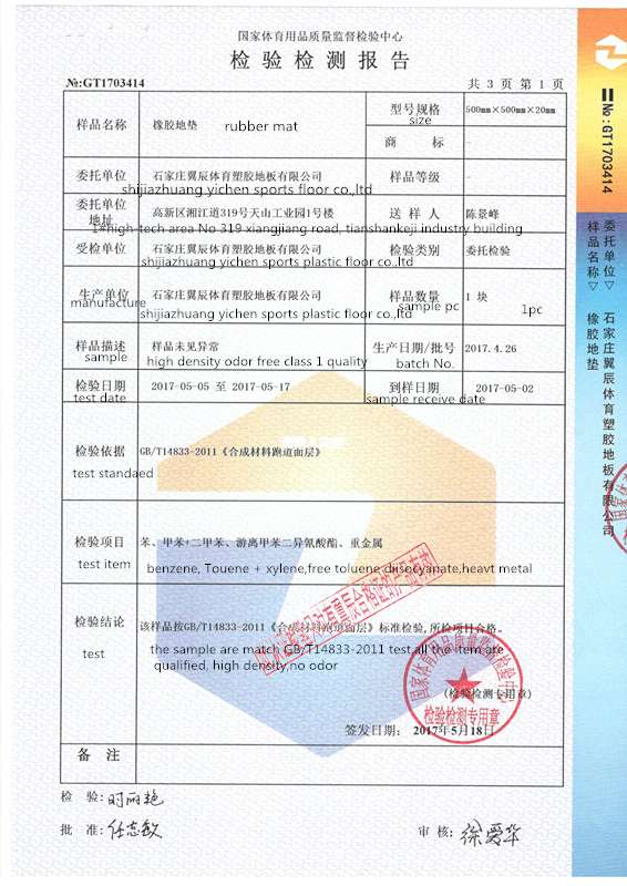 如沒特殊注明,文章轉載請注明來自“翼辰地板”橡膠地板-國家體育用品質檢報告